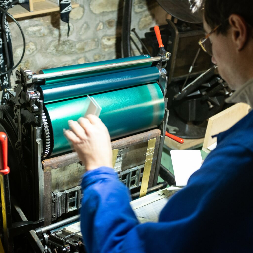 Ensuite viendra le temps du calage sur la machine et de la mise en train de celle-ci, avant de pouvoir commencer à imprimer, réellement. S’en suivra un nettoyage méticuleux des formes, de la presse et de ses rouleaux.